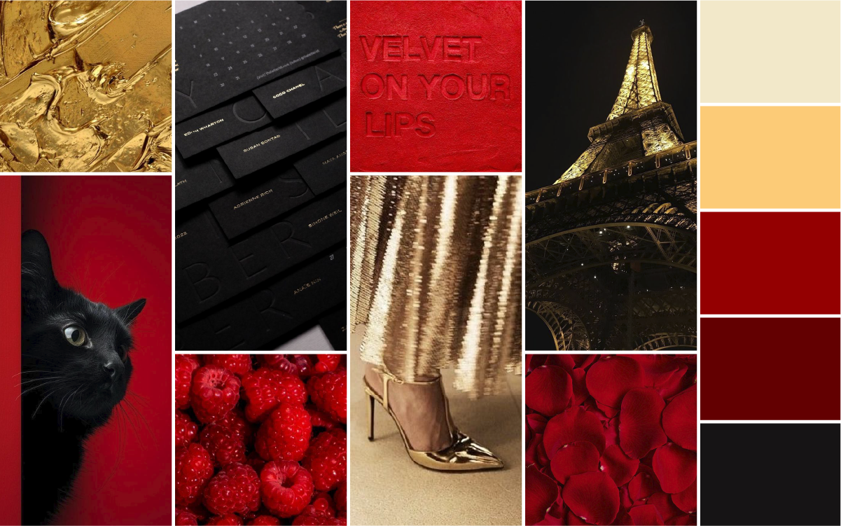 En ce mois de Décembre, terminons l’année avec éclat grâce à notre douzième moodboard : Glamour & Sensuel. Ses tons riches et ses détails raffinés incarnent l’élégance et le charme, parfaits pour la saison des fêtes.